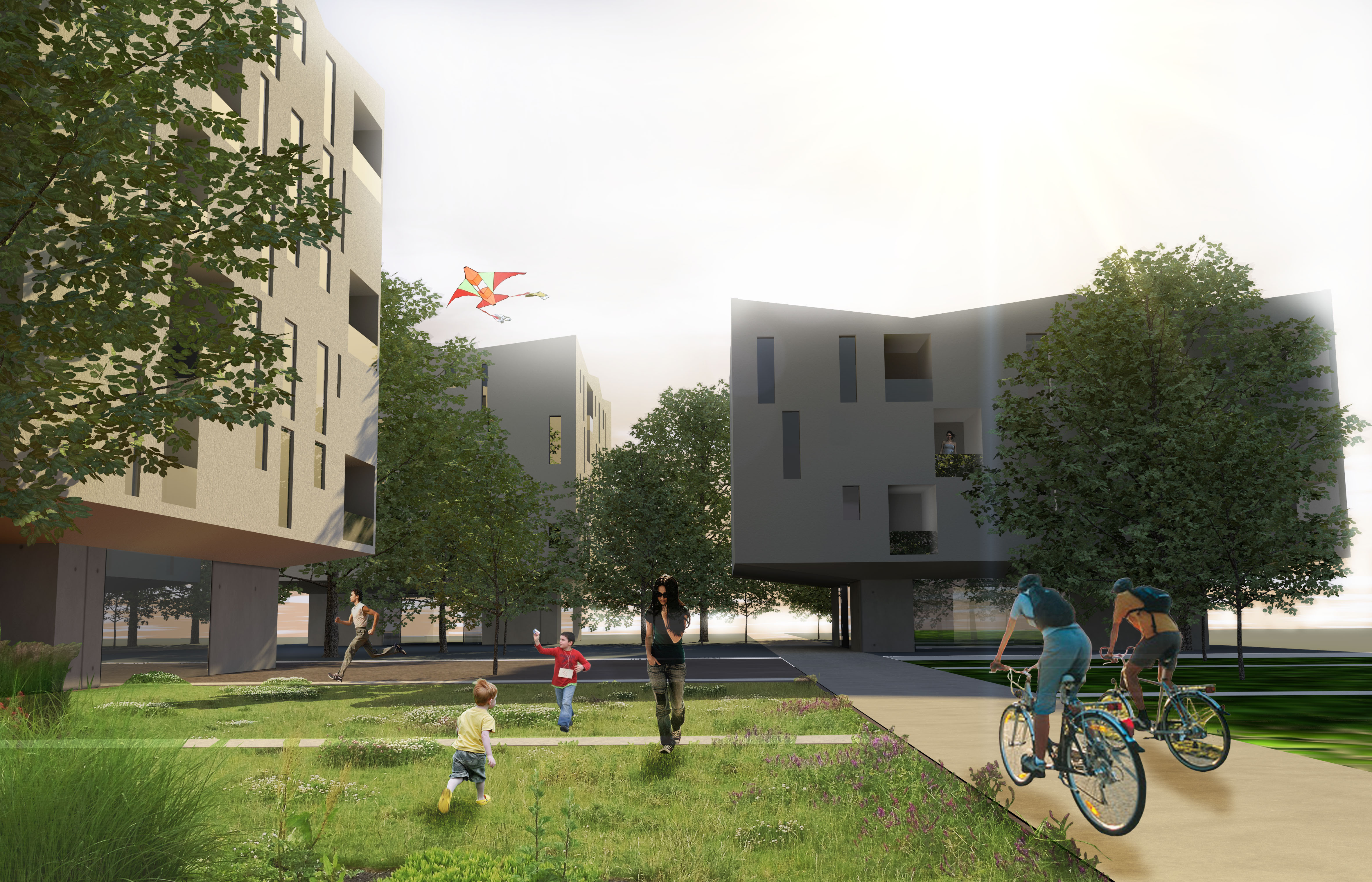 La strategia di progetto prevede l’estensione del parco del Piraghetto come struttura su cui insediare tutti gli edifici previsti nel programma, la nuova stazione e un nuovo quartiere residenziale sul bordo della ferrovia. Il parco è pensato come un percorso senza soluzione di continuità che attraversa il piano terra delle residenze e si insinua all’interno della stazione.